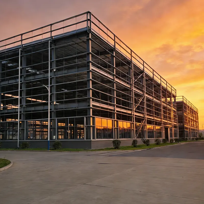 Bloc d'usine à structure en acier à plusieurs étages, conçu avec des profilés en acier de qualité supérieure pour une résistance stable, sismique et au vent. La préfabrication en usine permet un assemblage rapide et de haute précision sur site et une disposition spatiale personnalisable, s'adaptant aux divers besoins de production et de stockage grâce à un espacement flexible des colonnes et une conception en hauteur claire.